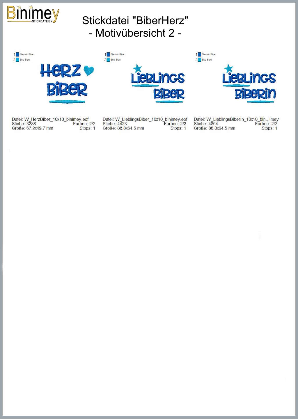 Das Copyright der Bilder und die Rechte der Stickdateien liegen bei Binimey-Stickdateien.